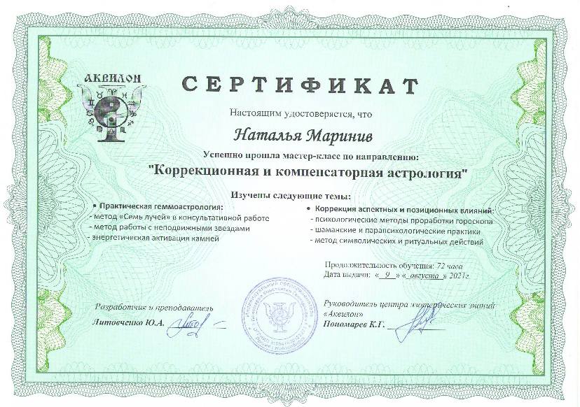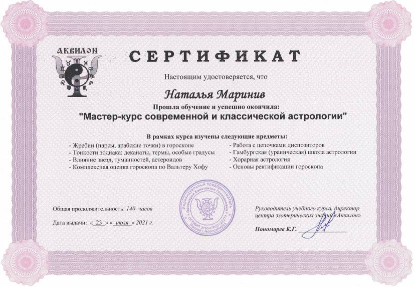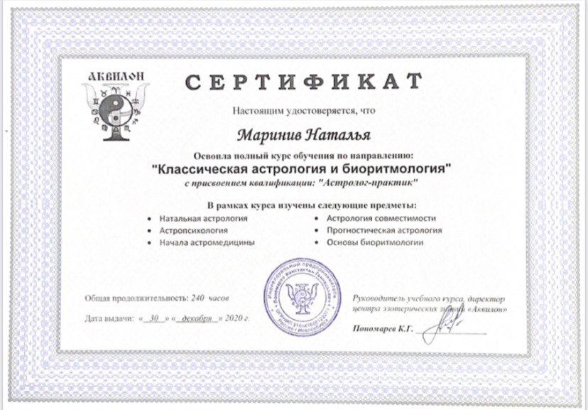 Привет! Меня зовут Наталья Маринив и я - практикующий астролог.